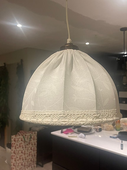 Håndsydd vintage taklampe – ca. 1940–60 – ny ledning og pæreholder