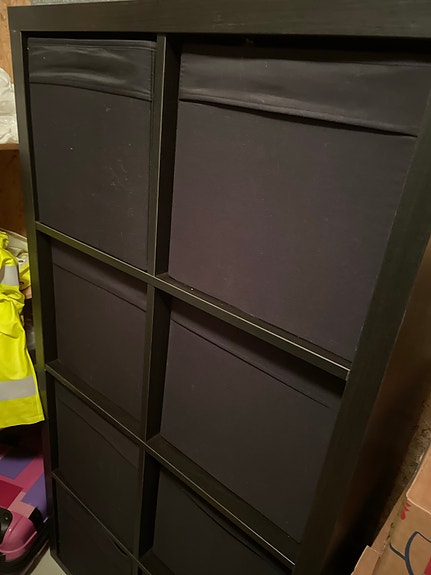 Kallax hylle selges med bokser