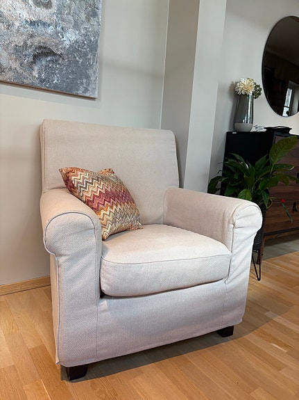 IKEA lenestol lys beige hvitt stoff