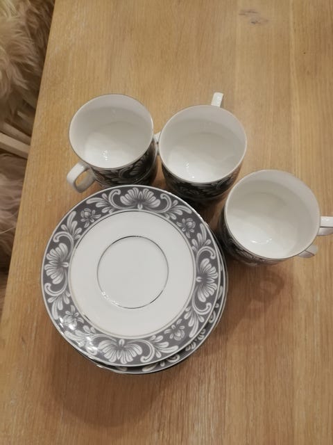 4 kaffekopper og asjetter