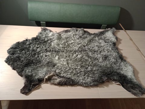 Saueskinn grå kort ull