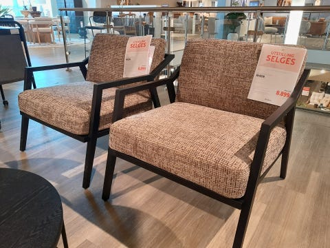 Belysning (43 538)Bord og stoler (51 007)Dekorasjon og pyntegjenstander (149 967)Garderobe og skap (10 717)Hyller og kommoder (24 254)Kjøkkenutstyr og serviser (143 153)Pynt til høytider og fest (33 089)Senger og madrasser (11 428)Sofaer og lenestoler (28 638)Tepper og tekstiler (46 797)Annet (26 720)