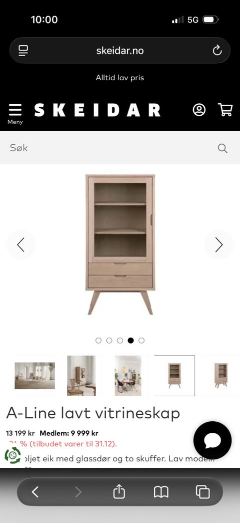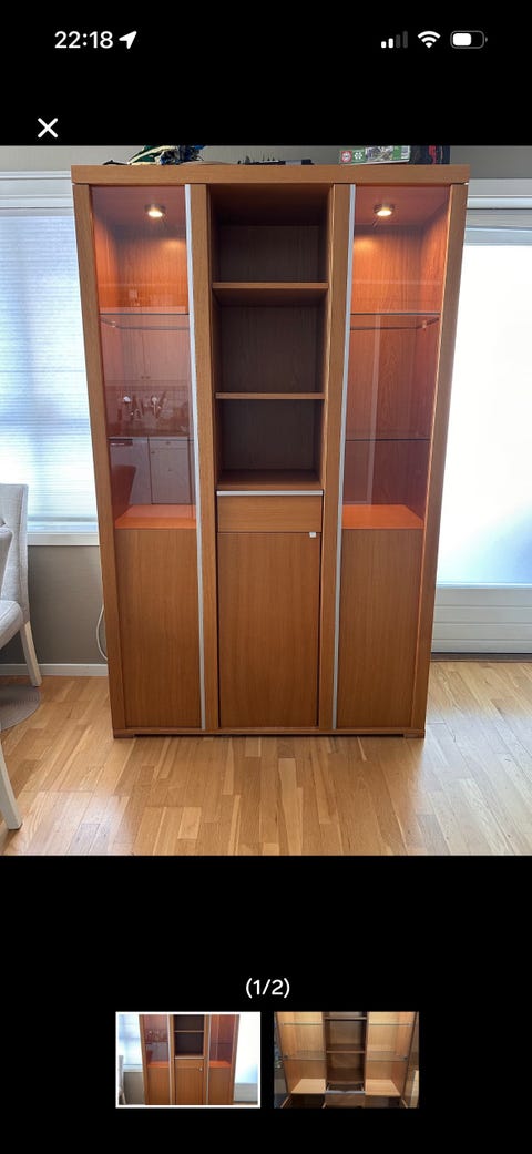 Vitrineskap selges