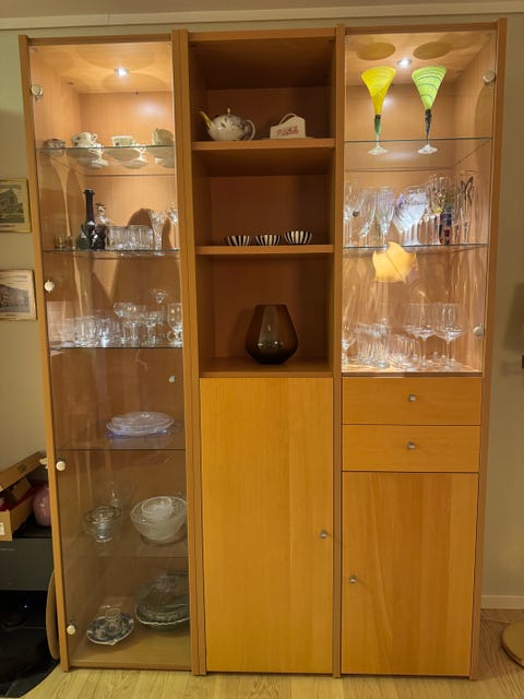 Vitrineskap selges