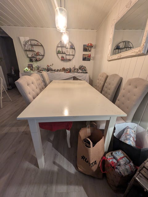 Belysning (43 288)Bord og stoler (50 180)Dekorasjon og pyntegjenstander (148 865)Garderobe og skap (10 598)Hyller og kommoder (23 944)Kjøkkenutstyr og serviser (142 372)Pynt til høytider og fest (32 924)Senger og madrasser (11 253)Sofaer og lenestoler (28 036)Tepper og tekstiler (46 273)Annet (26 514)