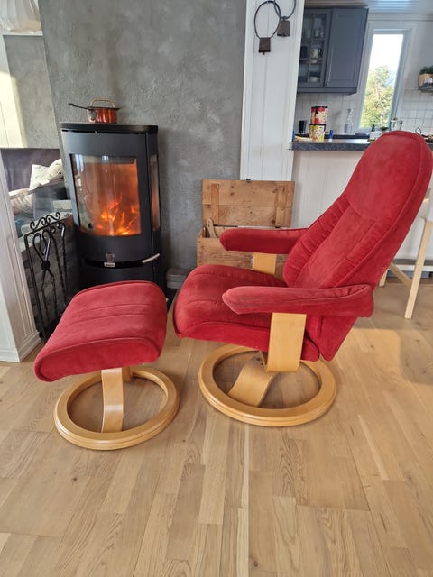 Rød lenestol m krakk