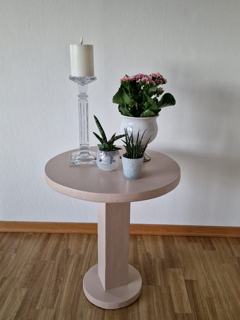 Rundt bord i beige farge
