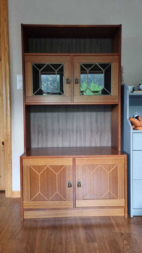 teak vitrineskap