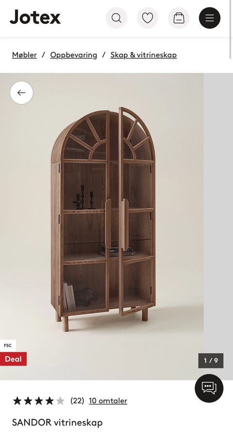 Amadeus vitrineskap til salgs