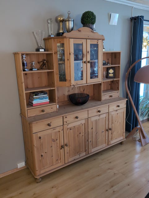 Skatoll i furu med vitrineskap