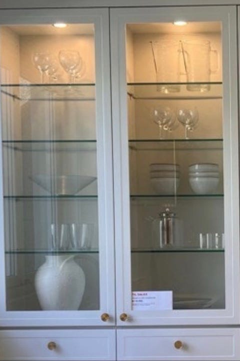 Vitrineskap med glasshyller