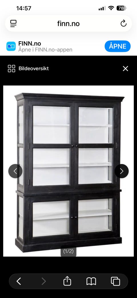 Vitrineskap selges