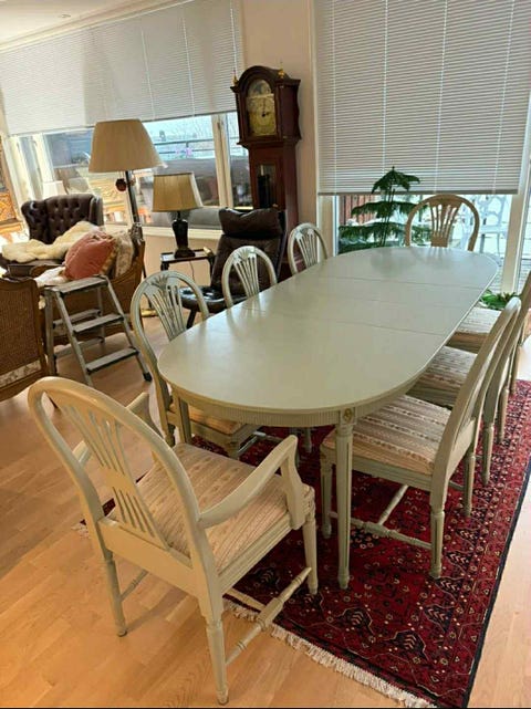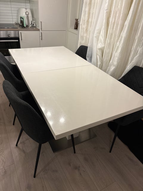 Spisebord med fire stoler.