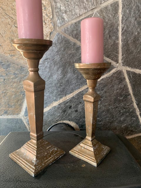 To rustikke lysestaker i metall