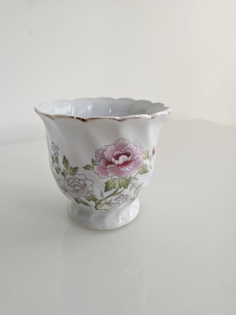 Vakker liten vase med blomstermotiv