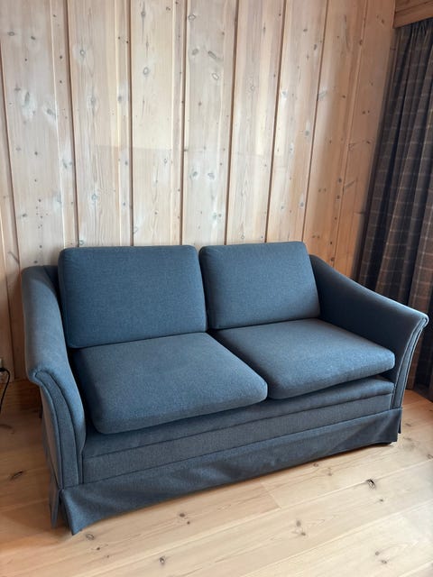 To-seter sofa i ullstoff
