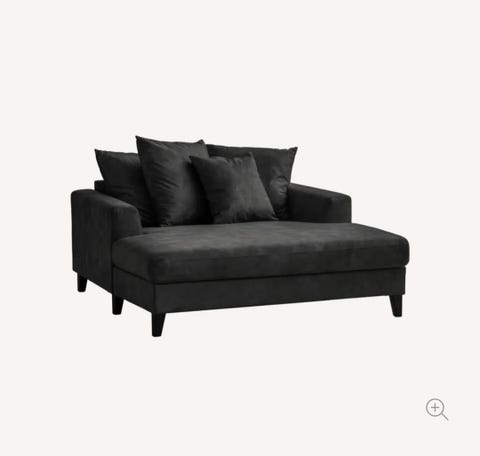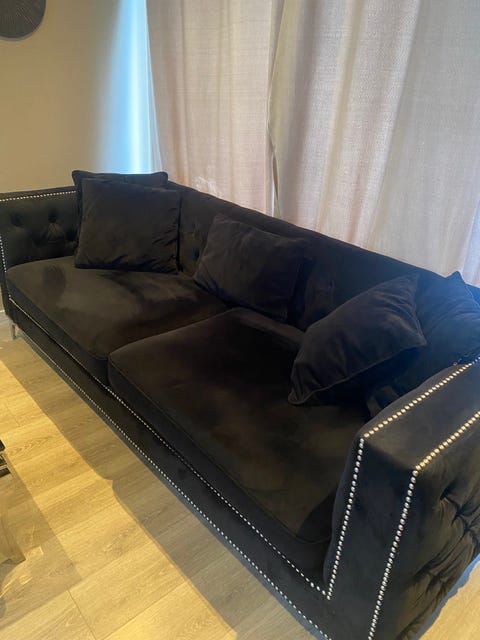 Sofa med mørk fløyel og nagler