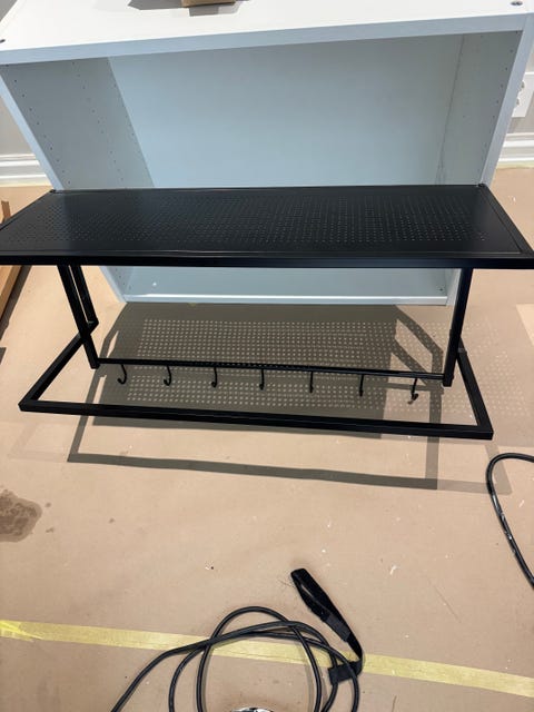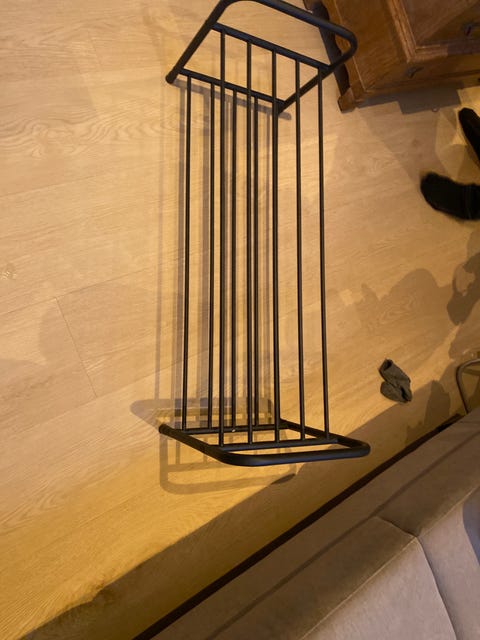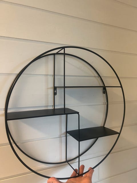 Svart hylle med knagger