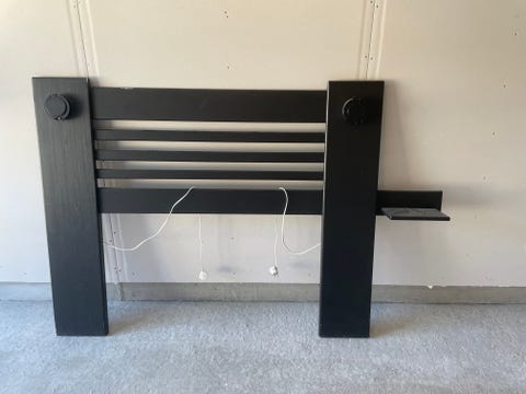 Sengegavl av tre med lamper