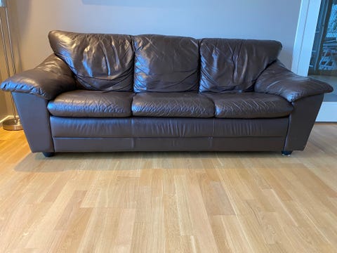 Brun skinnsofa