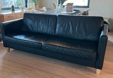Sort skinnsofa gis bort