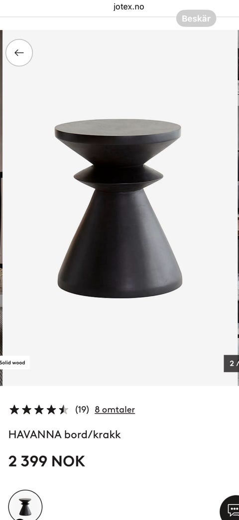 Belysning (41 102)Bord og stoler (47 520)Dekorasjon og pyntegjenstander (142 257)Garderobe og skap (10 197)Hyller og kommoder (22 651)Kjøkkenutstyr og serviser (137 643)Pynt til høytider og fest (30 035)Senger og madrasser (10 867)Sofaer og lenestoler (26 769)Tepper og tekstiler (43 777)Annet (25 079)