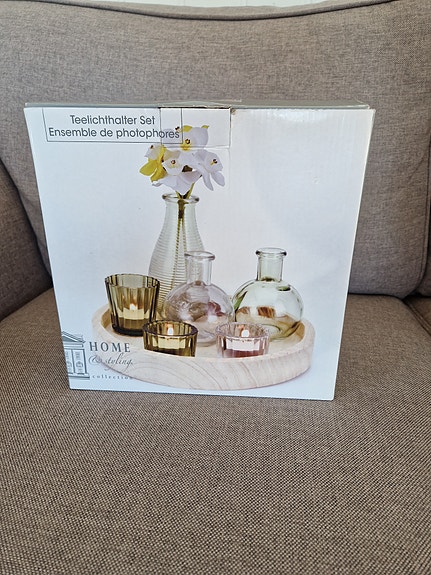Pyntebrett med vaser og telysholder