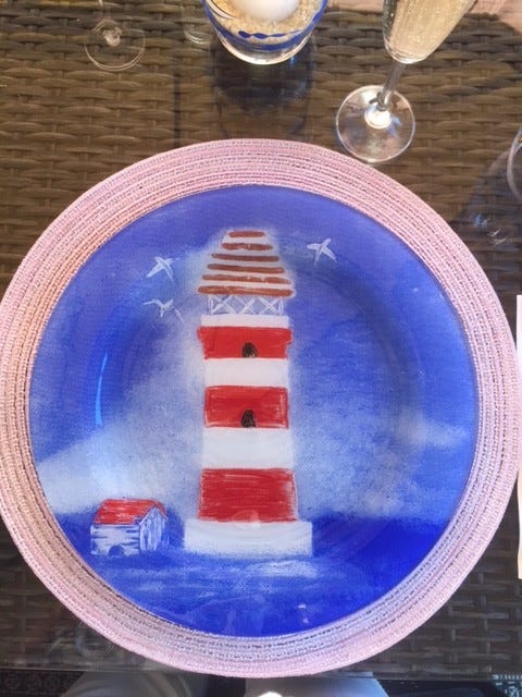 Glasstallerken med sjømotiv