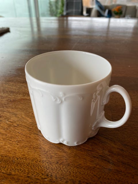 Rød emaljert mugge ønskes kjøpt