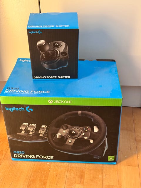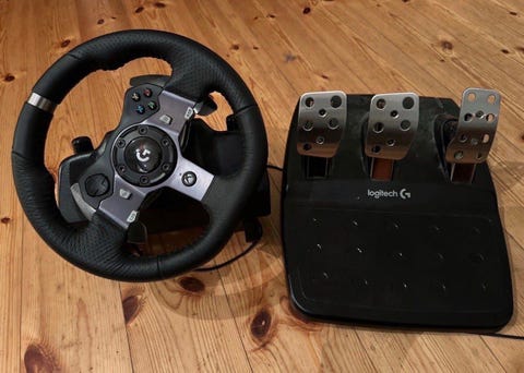 Logitech G920 ratt og pedaler.