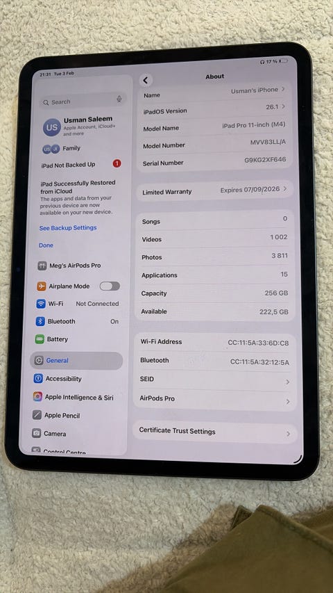 iPad Pro 12.9” (6. gen) 256GB Wi-Fi - væskeskadet, defekt - til reparasjon/deler