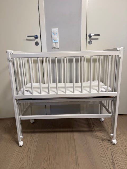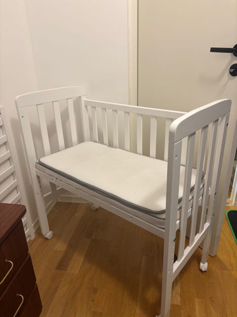 Bedside crib med madrass