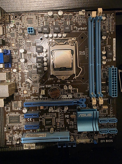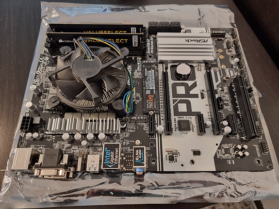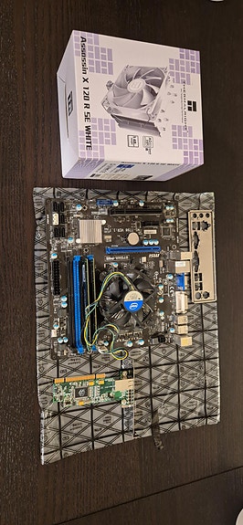 Core i5-3470 med B75MA-P45 hovedkort og 8 GB RAM og kjøler (og ekstra kjøler)