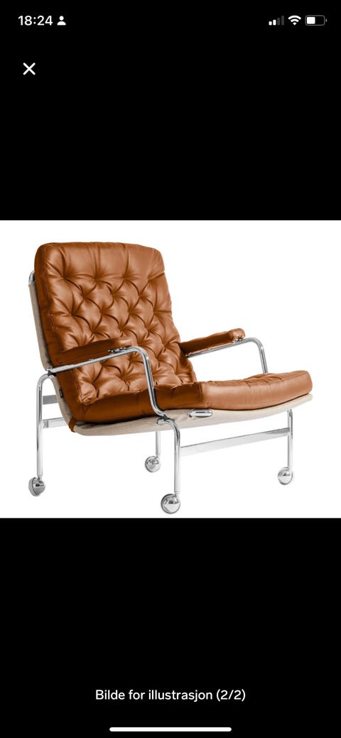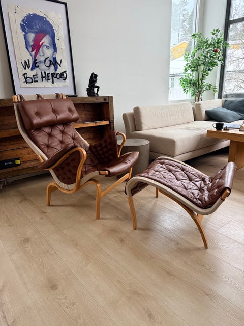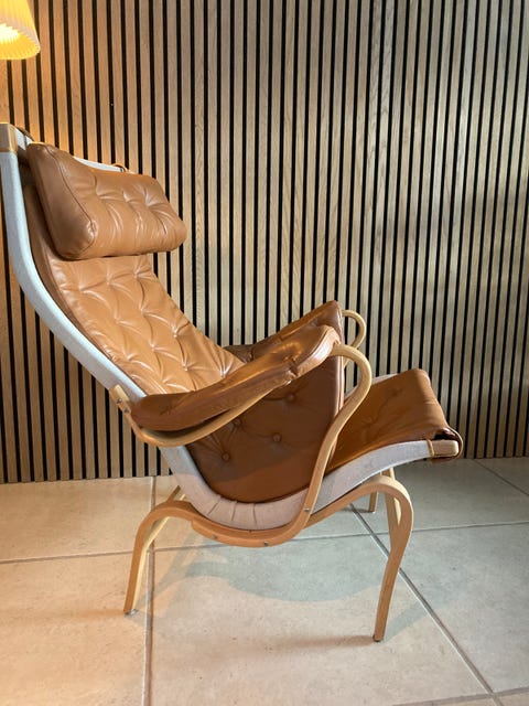 2stk Bruno Mathsson klassiske lenestoler med fotskammel til salgs. Begge solgt