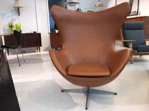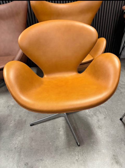 Original Arne Jacobsen 3320 Svane, professionelt nypolstret Cognac farvet skinn