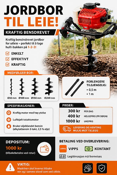 🔥 Jordbor til leie – kraftig bensindrevet! 🔥