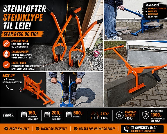 🧱🔥 Steinløfter / steinklype / steinkutter til leie – spar rygg og tid!
