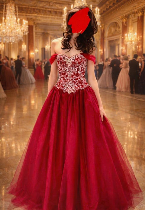 Salg eller utleie: Rød ballkjole Alexandra Ritzi modell Raya kjøpt januar 2026