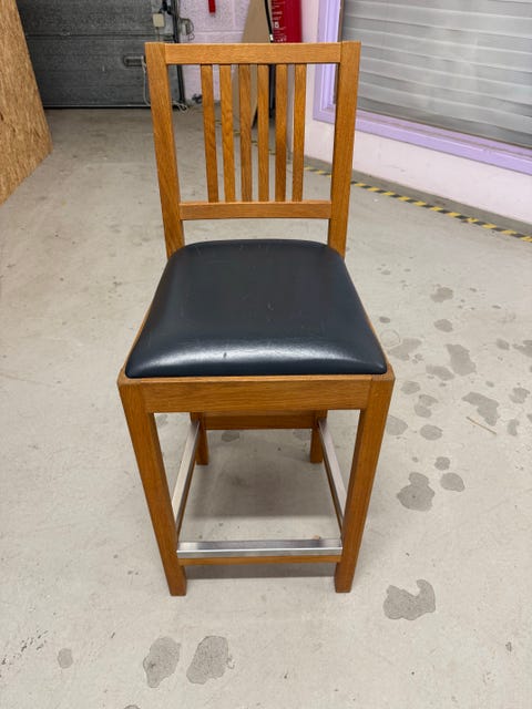 2 Barstoler i eik med skinntrekk