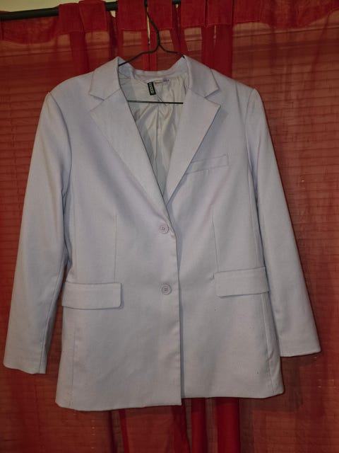 Stripete dressjakke og hvit skjorte i lin/bomull str. 134 (8-9år)