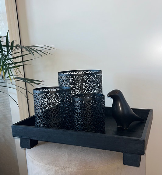 Tre veggklokke med hjerte og tremotiv i tre