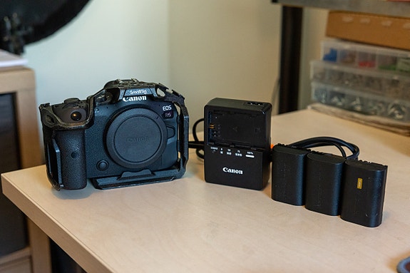 Canon EOS R6 m/ ekstra batterier og smallrig kamera cage
