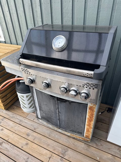 Gassgrill med 4 brennere og skap
