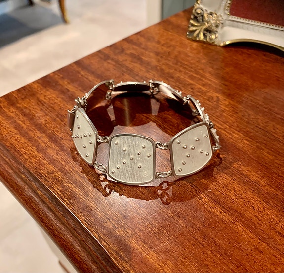 Nydelig sølv armbånd med hvit emalje av K.A Rasmussen. 925 sølv