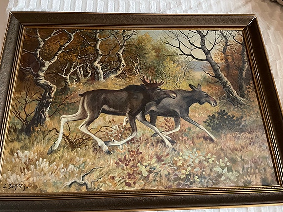 L. Berger maleri elg i høstlandskap