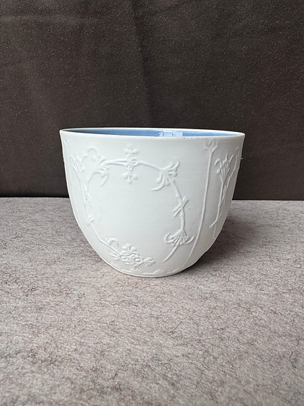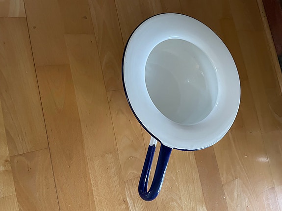 Kockums bekken i hvit og blå emalje