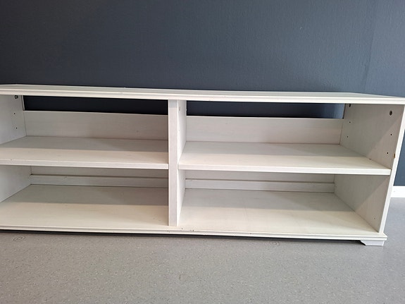 Hvit tv-benk gid bort.