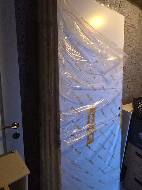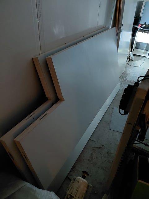 Hvite sponplater med utsparinger