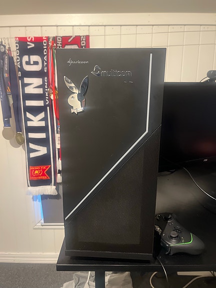 Stasjonær gaming PC med glasside og RGB-belysning