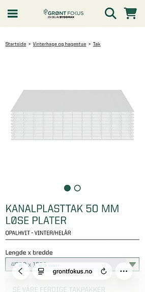 Kanalplasttak 50 mm plate 4500 x 1220 mm opalhvit